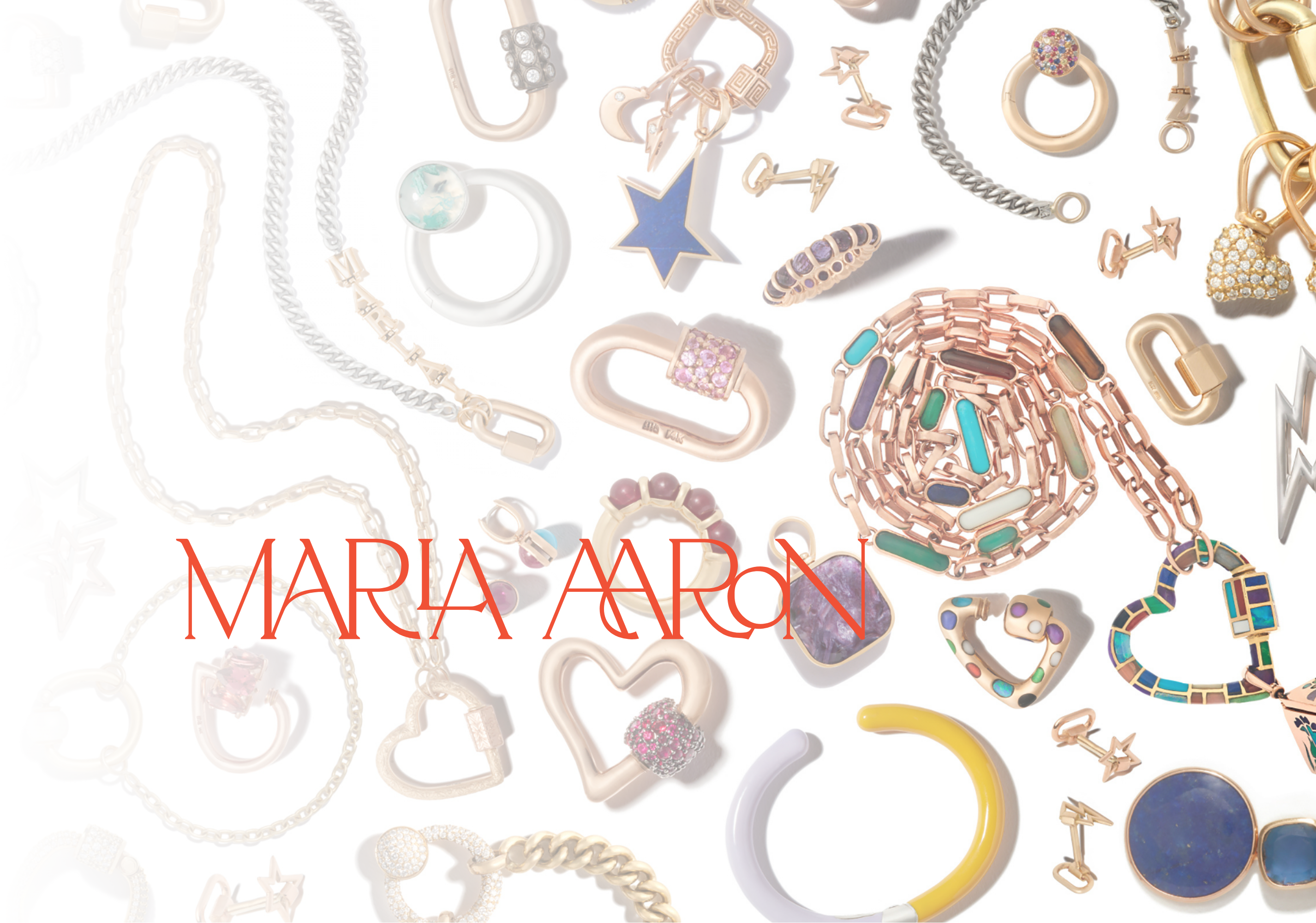 Jedes Stück von Marla Aaron vereint rohe Eleganz und technische Raffinesse. Verwendet werden edelste Materialien wie 18 Karat Gold, Sterling Silber, Diamanten und außergewöhnliche Edelsteine. Manche Schmuckstücke sind schlicht und stark, andere bunt & verspielt.
